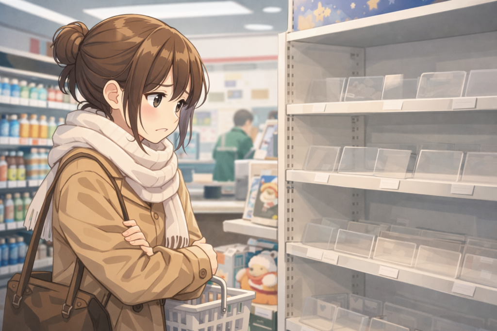 3つ目は、買い方が“加速装置”になりやすい点です。今回のくじは、購入特典(条件達成でカレンダーがもらえる仕組み)が用意されています。こうした特典は「どうせならまとめて引く」を生みやすく、1人あたりの購入回数が増えがちです。すると、同じ入荷量でも“消える速度”が速くなり、夕方には棚が空っぽ、という展開が起きやすくなります。