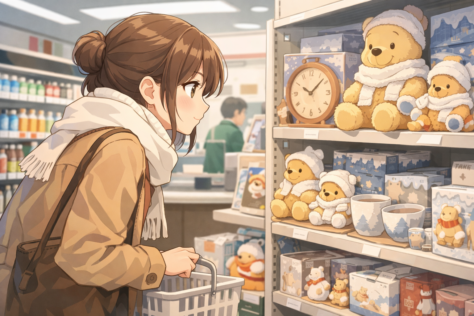 1つ目は、プーさんの裾野の広さです。作品ファンの熱量が高いのはもちろん、「キャラ物は普段買わないけれどプーさんだけは別」という層が一定数います。そこに“冬の癒やし”というテーマが乗ると、季節の気分に背中を押される形で購入が増えます。