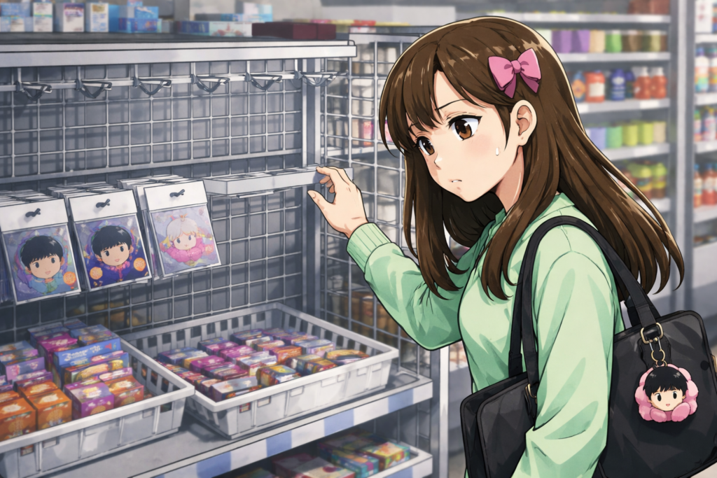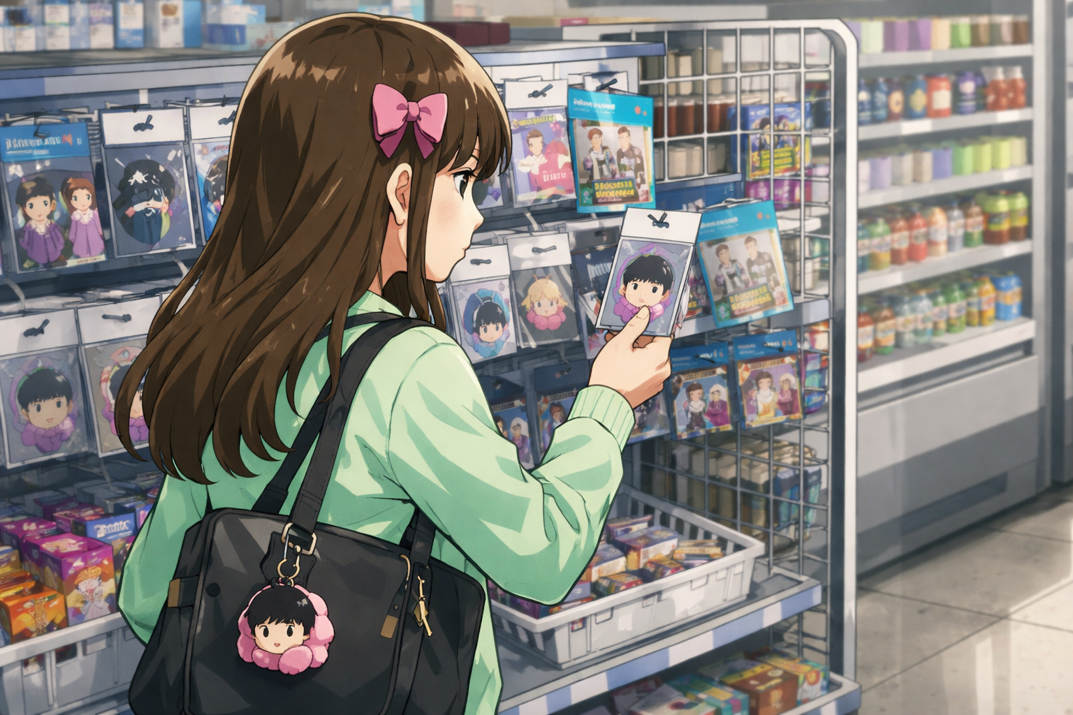 この層の重なりが強いほど、店頭在庫は短期決戦になりやすくなります。とくに痛バ目的は「同柄を複数ほしい」動機がはっきりしているため、1店舗での消化が早い。さらにブラインド仕様だと、推しが出るまで回数が増える。結果として、発売初日〜数日間は“見つけたら買い”になりがちです。