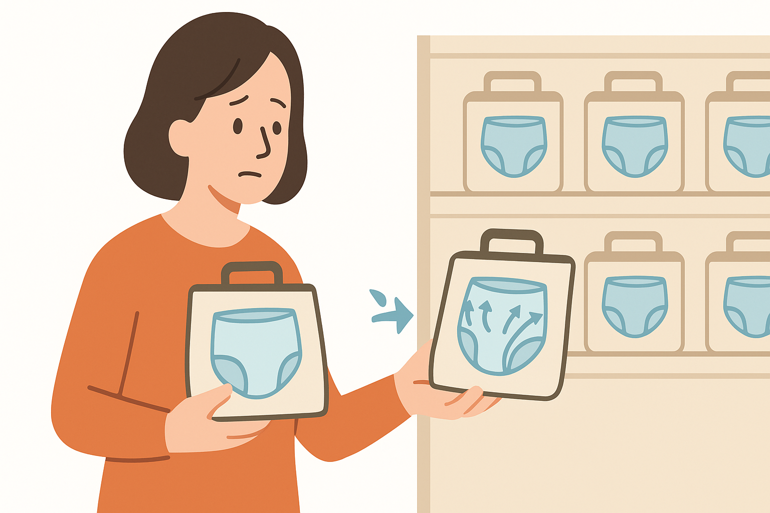肌に深刻なダメージを与えるのは、化学的刺激物を含む液体としての尿です。したがって、IAD予防の観点からは、通気性という言葉だけでなく 逆戻りの少なさ を最優先で評価し、パッドを選ぶことが極めて合理的です。通気性は快適性に、逆戻り抑制はIAD予防に直結するため、両立する製品を選ぶのが望ましいといえます。