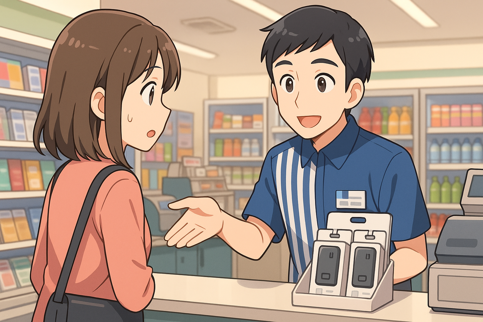 とひと言添えるだけで、レジ横や文具コーナー、雑誌棚の近くなど、どこを見れば良いかすぐ案内してもらえるはずです。