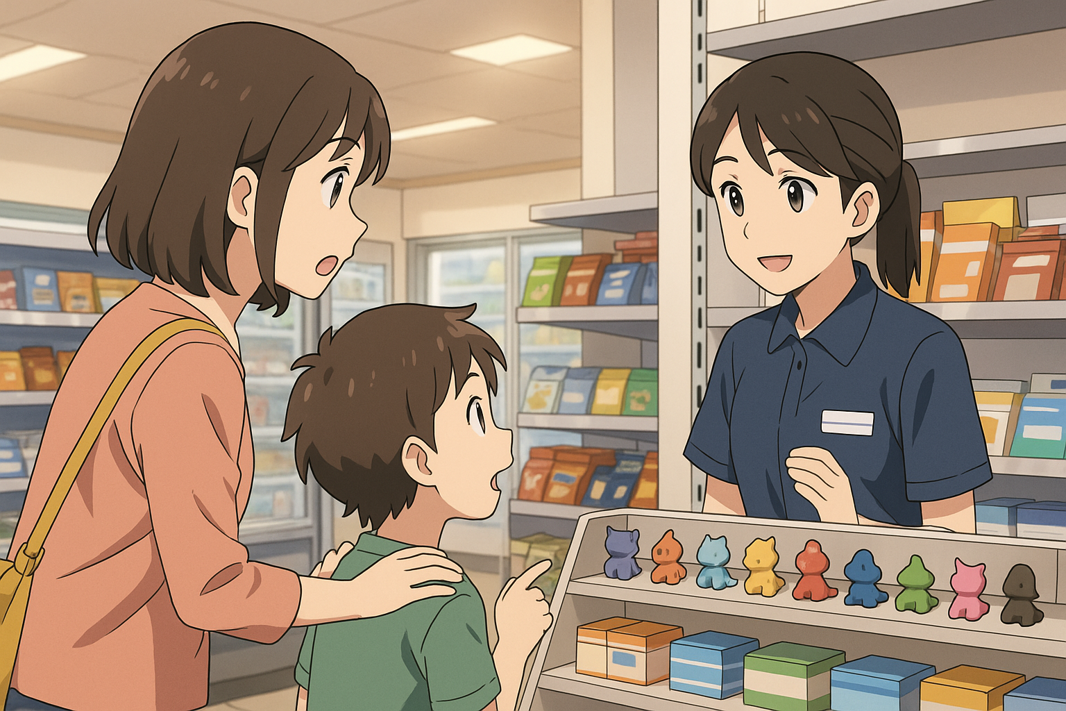 移動してから「やっぱり置いていなかった」となると、子どもも大人もがっかりしてしまいます。可能であれば、向かう前に店舗へ一本電話を入れて在庫を確認しておくことをおすすめします。その際は、次のように伝えると店員さんがイメージしやすくなります。