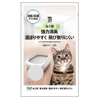 深夜帯に入手しやすいのは、小容量で持ち帰りやすい2.7L前後の袋入りタイプです。セブン‐イレブンでは、固まるタイプの「ベントナイト」素材がPBとして定番化しています。固まりが作れ、におい対策もしやすいので「とりあえず今夜を乗り切る」目的に合います。価格は店舗により前後するため、アプリ表示や店頭でご確認ください。