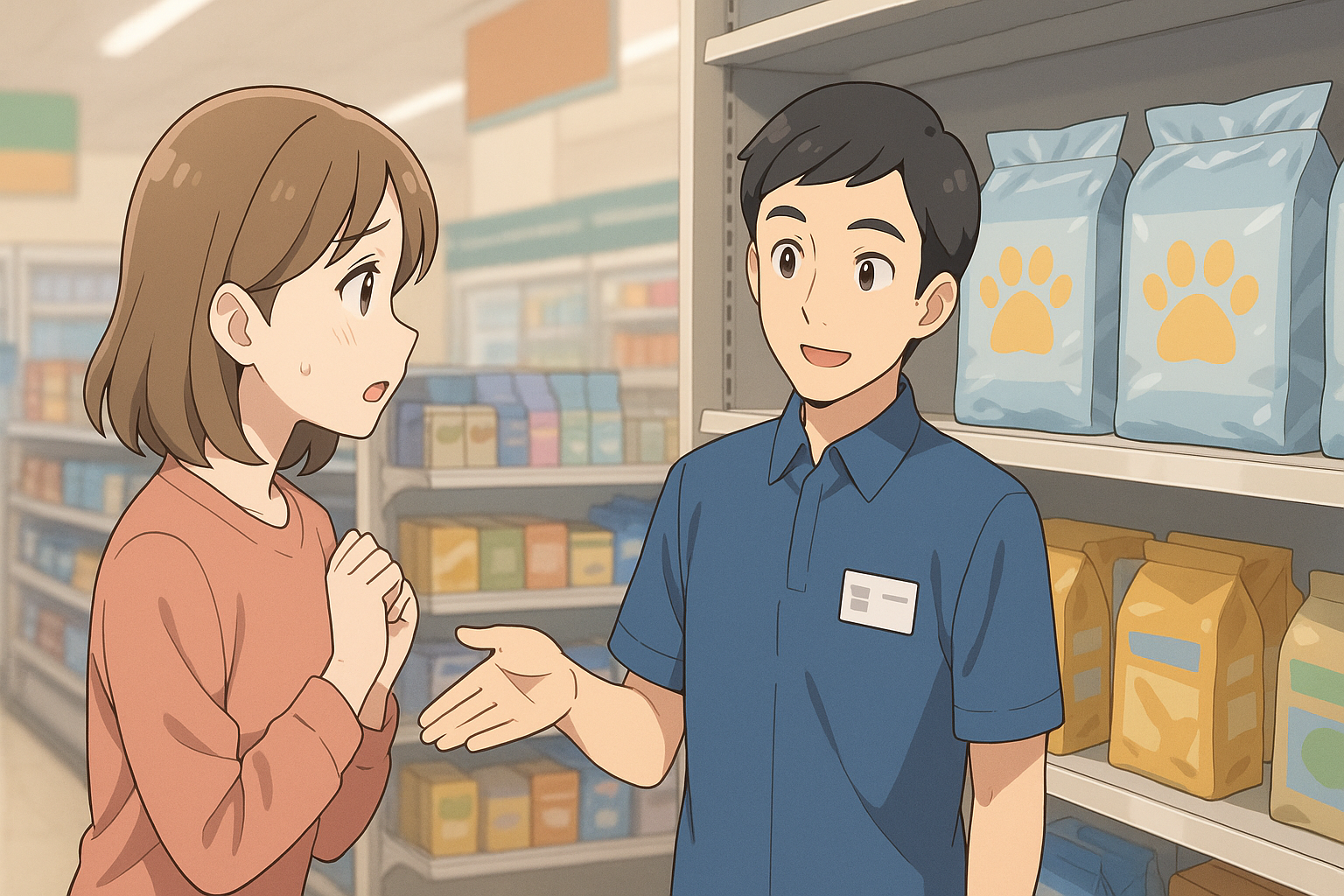 - 来店後は日用品/ペット用品の棚→不明ならレジで質問