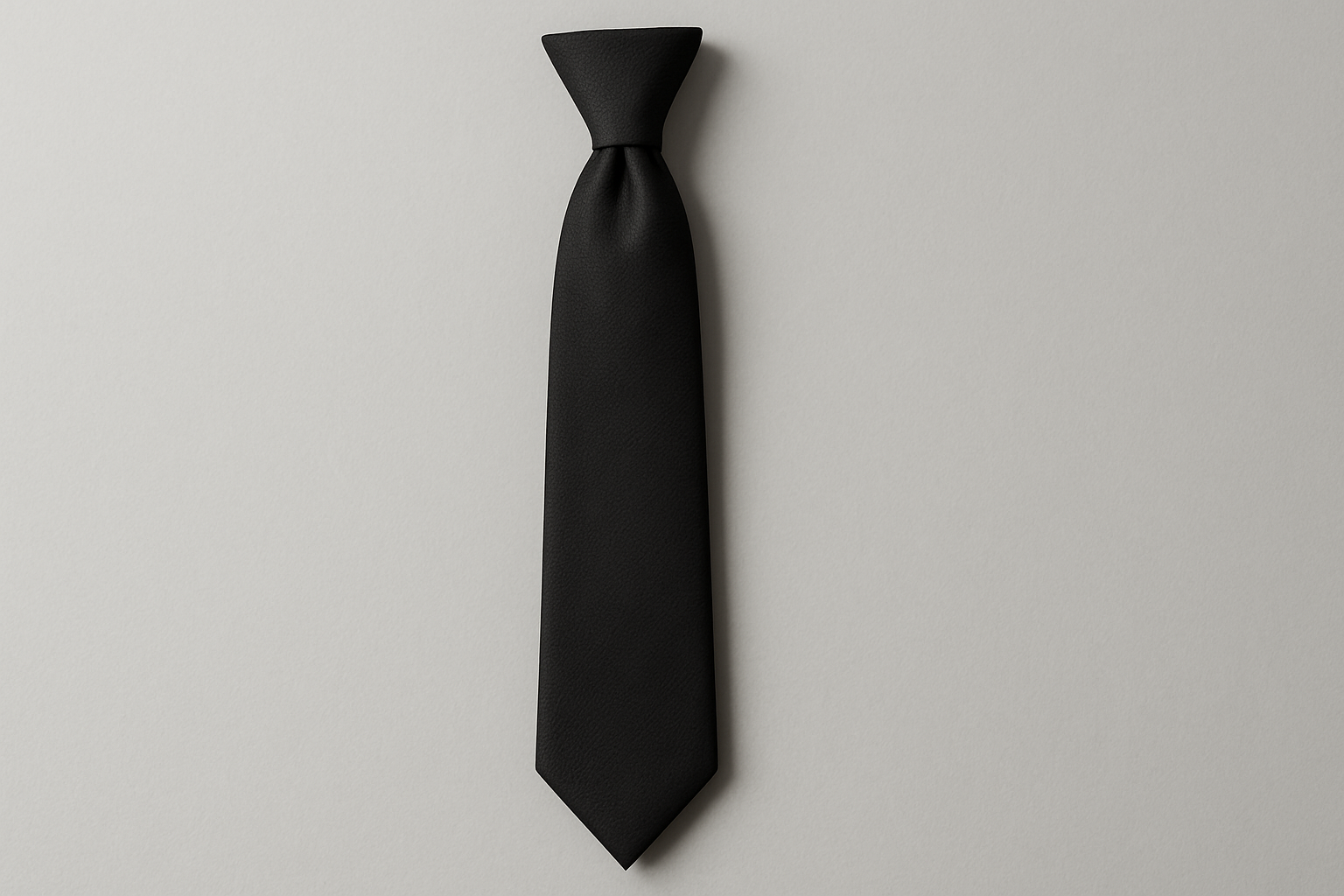 弔事では黒無地で光沢の少ない(マット)ネクタイが基本です。柄や強い光沢は華美に映るため避けましょう。大剣幅は一般的な7〜9cm前後が無難です。 - 避けたい小物