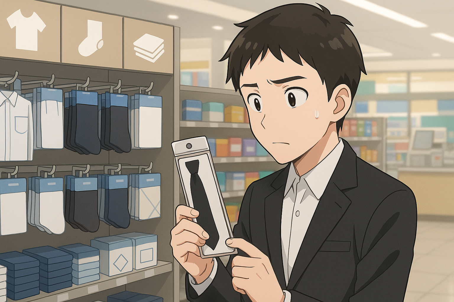 - 各店に電話し、黒の無地・光沢控えめの弔事用ネクタイが今あるか、売場位置はどこかを確認。アプリ表示は便利ですが、最終確認は電話が確実です。