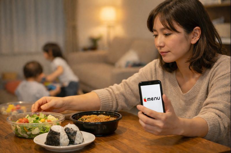 そこで選択肢として持っておきたいのが、デリバリーアプリmenuを使ってローソン近所のローソンから食事を取り寄せ、用途別に夕飯を組み立てる方法です。強みは、速さを言い切れることではありません。到着目安はアプリに表示され、混雑・天候・エリアで変動します(アプリの表示に従ってください)。それでもこの方法が助けになるのは、「何を買えばいいか」を用途で決められて、失敗しにくいからです。