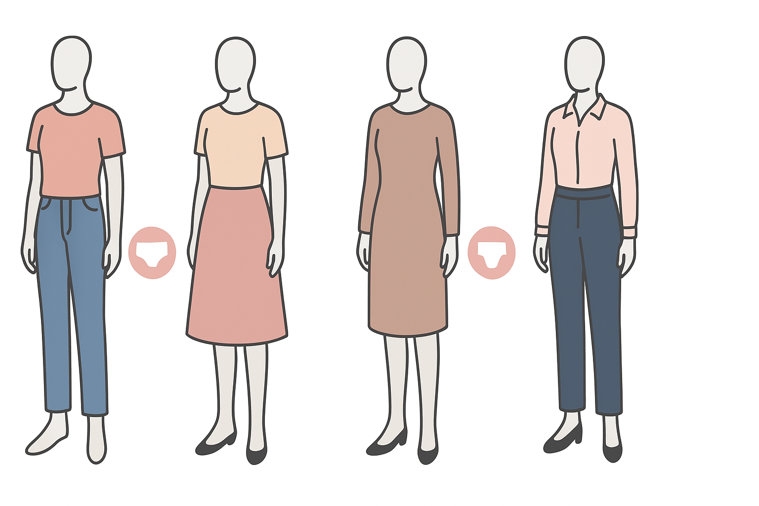 洋服の上から着用していることが透けて見えてしまうのは、女性が最も避けたい「おむつバレ」の状況です。透けにくさを重視する場合、肌の色に近いカラーを選ぶことが基本となります。
