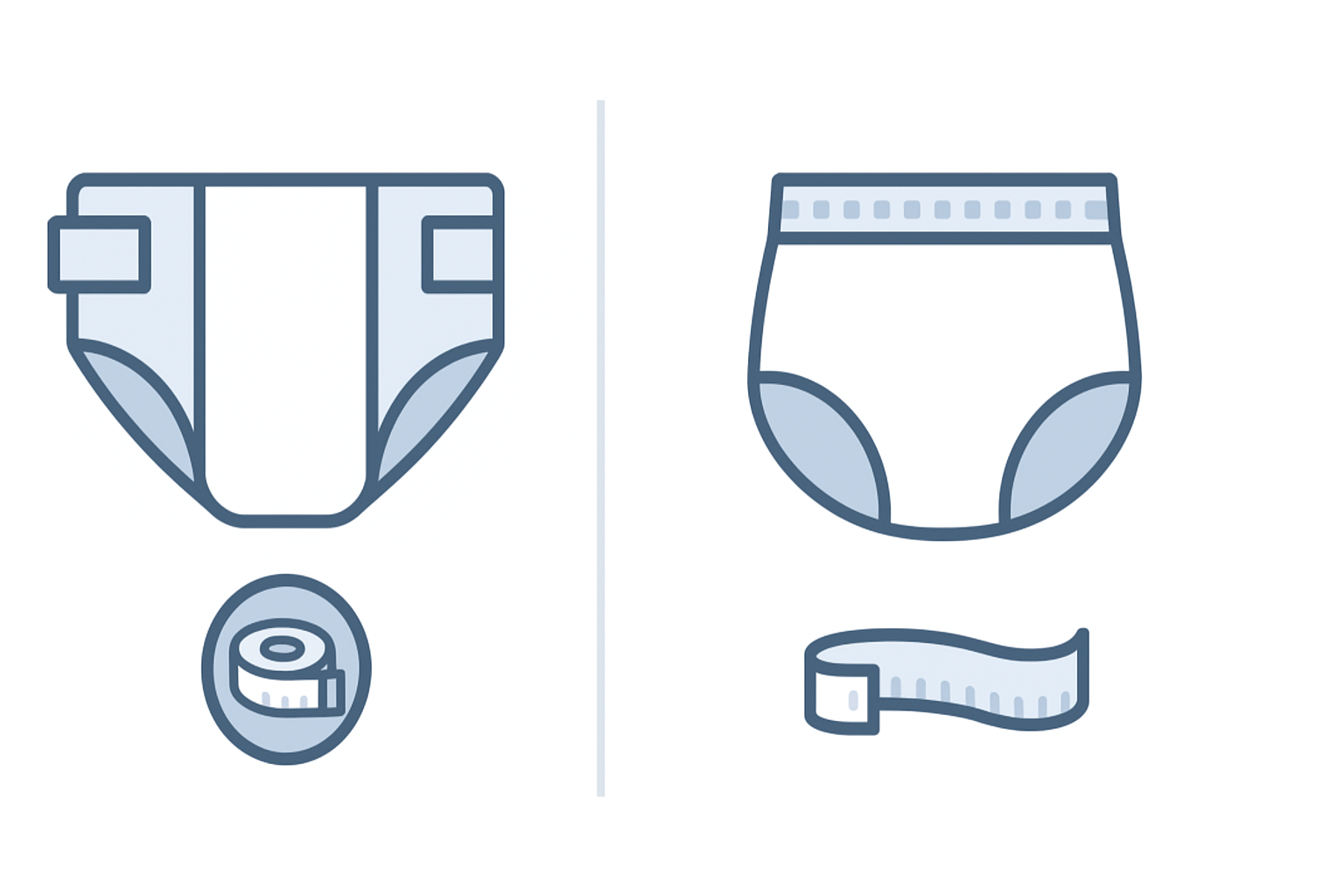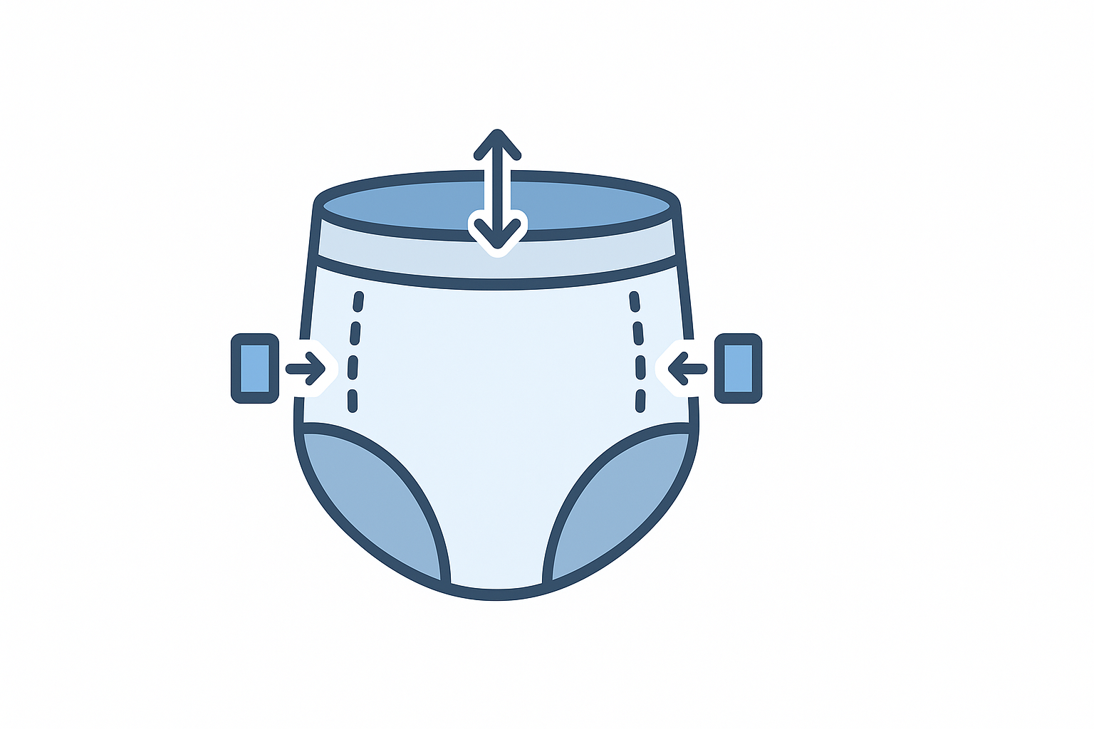 テープ式では、パンツが下にずれ落ちるのを防ぐため、テープをクロスさせるように止めるとフィット感が高まります。具体的には、下側を少し斜め上向きに、上側を斜め下向きに貼ると、お腹周りのフィット性が高まります。メーカー推奨手順を参照し、苦しくない範囲のフィットを心がけます。 - 締め付けすぎない:
