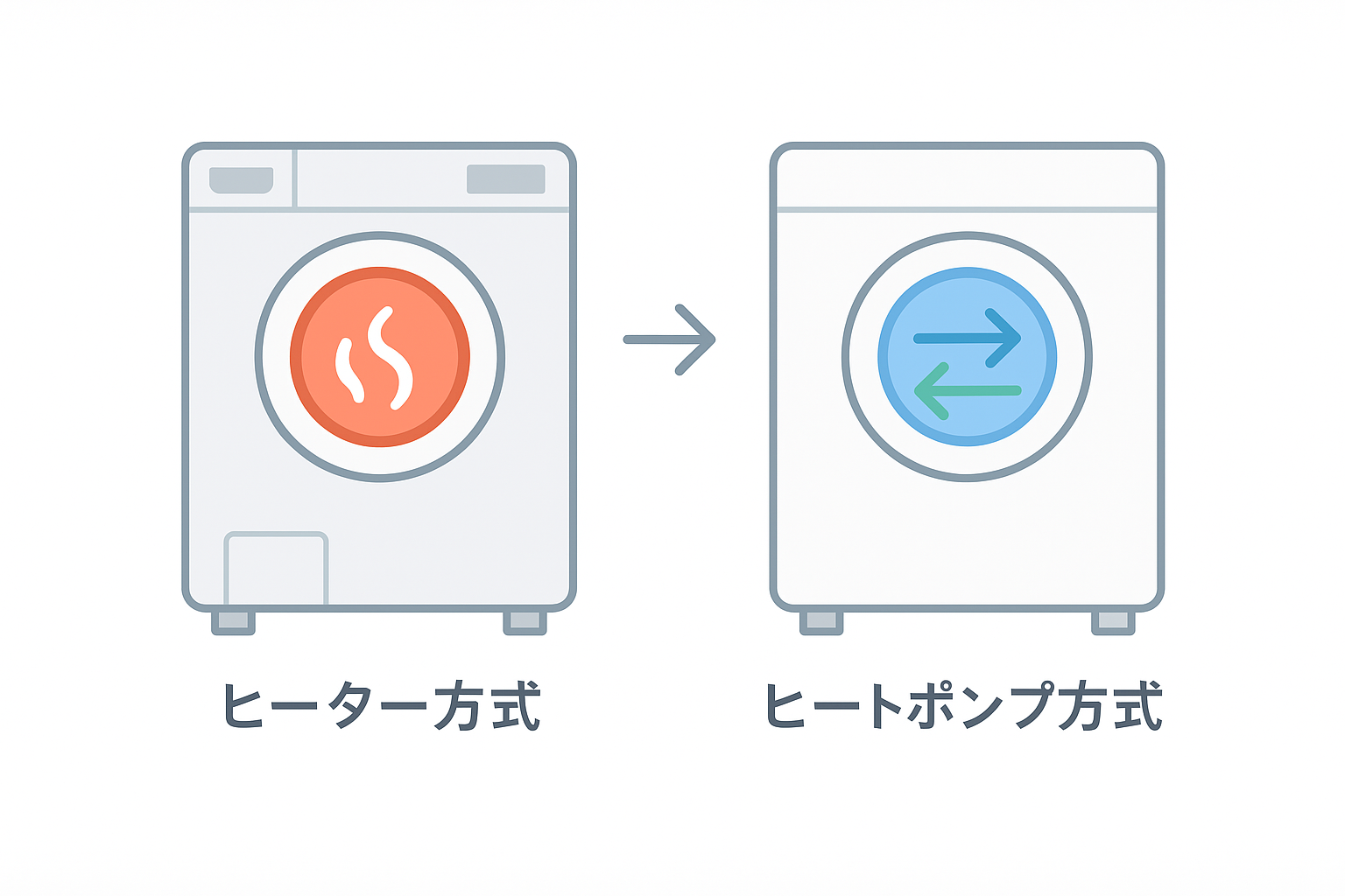 ドラム内という狭い空間で衣類に直接温風や除湿を当てます。熱や乾いた空気が衣類に集中しやすく、条件が安定すると効率が上がります。ヒートポンプ方式は低温で湿気を取り除くのが得意で、ヒーター方式は高温で一気に乾かすのが得意です。