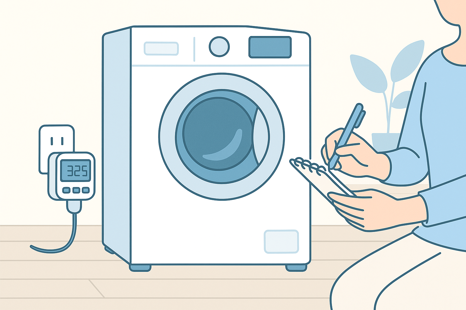 より確からしい値を得るには実測が最短です。スマートプラグやワットチェッカーを本体とコンセントの間に挟み、運転開始から終了までの消費電力量を記録します。乾燥のみモードがあるなら洗濯と分け、条件をそろえて3回以上測り平均を取りましょう。測定が難しく感じるかもしれませんが、手順はシンプルです。