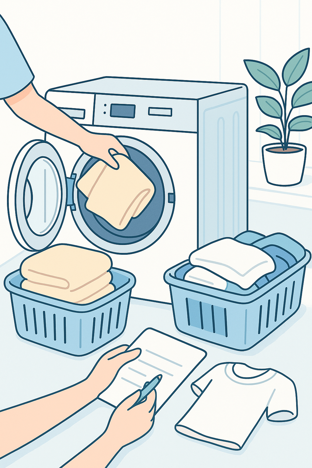 厚手に合わせて全体の運転が延びるのを避けます。厚手だけ少量で運転すると、風が通りやすく時短になります。バスタオルは枚数と量を意識し、必要なら2回に分けます。
