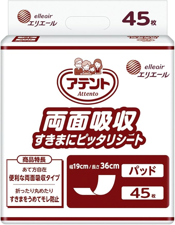 両面吸収シートは隙間を物理的に埋めるための充填材。表裏どちらからも吸って、余剰は下の本体に透過します。単独では使わず、必ず紙おむつや尿とりパッドと併用します。
