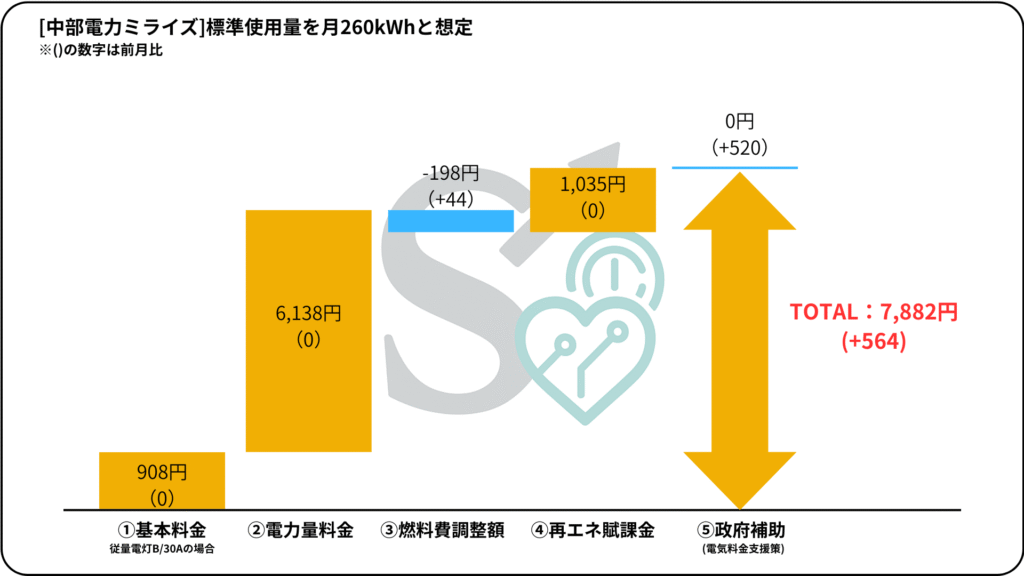 参考:中部電力ミライズ「2025年11月分電気料金の燃料費調整について」