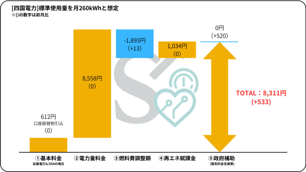 参考:四国電力「2025年11月分電気料金の燃料費調整について」